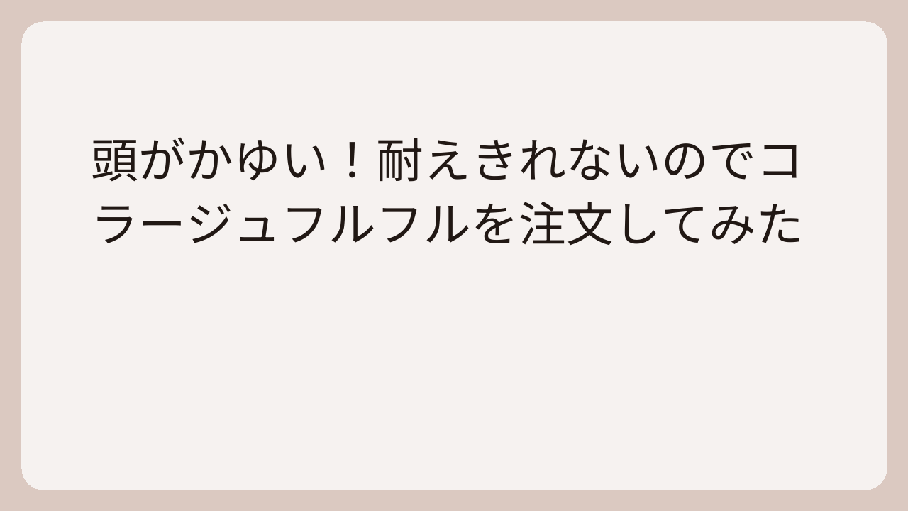 グッズ 頭がかゆい!耐えきれないのでコラージュフルフルを注文してみた 私の最近の悩みは、頭皮が猛烈にかゆいことです。でも掻くと、フケが雪のように肩に降り注ぐんです。もちろん毎日ちゃんとシャンプーしてるので、清潔にはしています。それでもナゼかかゆみが治まらない。忘れられな... 2020.05.20 グッズ